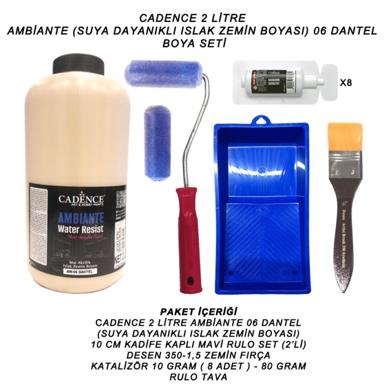 Islak zeminler için yüksek tutunma gücüne sahip, uzun ömürlü, darbe, çizik ve aşınmalara karşı dayanıklı, sararmayan, leke tutmayan “Ambiante Suya Dayanıklı Mat akrilik Boya”, cam ve seramik gibi ekstra kaygan yüzeylere Boya Katalizörü eklenerek su direnci arttırılır.Fayans, Seramik, Lavabo, Küvet, Banyo Tezgahı, Mutfak Tezgahı gibi tüm ıslak zeminlerde kullanıma uygundur.250ml ambalajlar için 10gr Katalizör, 500ml ambalajlar için 20gr 2 litre ambalajlar için 80gr katalizör ile birlikte gönderilir.Ambiante Suya Dayanıklı Mat akrilik Boya”, sağlığa zararlı madde içermez ve CE & EN71 normlarına uygundur.Kullanımı : Katalizörü açın ve boyanın içine dökün. İyice çalkaladıktan sonra yüzeye sürmeye başlayın. Yüzeyin kuru ve kirlerlerden arındırıldığına emin olun. Rulo, fırça gibi ürünlerle boyamaya uygundur. Tavsiye edilen kuruma süresi 6 saattir. Tercihen 2 kat uygulayabilirsiniz. Katlar arası 6 saat beklemeniz tavsiye edilir. Hazırlanan karışımı 24 saat içinde kullanmanız tavsiye edilir. Boya tamamen kuruduktan sonra kullanıma başlayabilirsiniz. Vernik ekstra koruyuculuk sağlamaktadır. Tercihinize göre taş vernik sürerek ekstra koruma sağlayabilirsiniz. İhtiyaç halinde katalizörü sadece taş verniğe karıştırıp kullanın. Katalizözörü taş vernik harici diğer verniklerle karıştırmayınız.