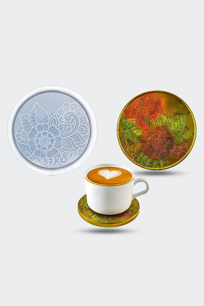 Çiçek Desenli Bardak Altı Epoksi Silikon Kalıbı EPK873
