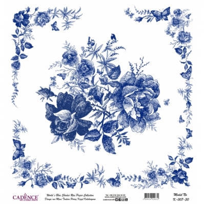 Model K007 Dünya'nın Mavi Tonları Pirinç Kağıt Dekopaj 90x92