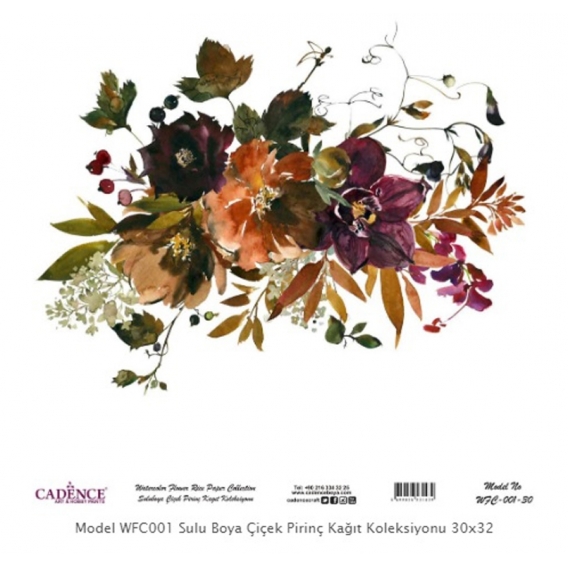 Model WFC001 Sulu Boya Çiçek Pirinç Kağıt Koleksiyonu 30x32